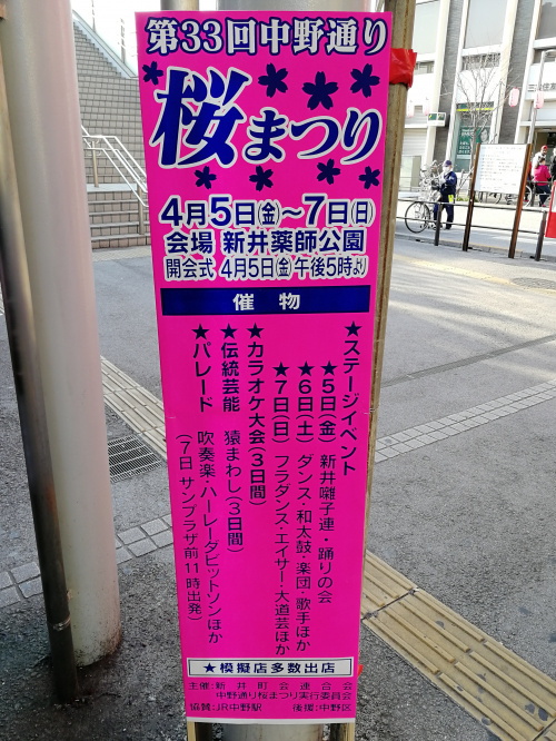 毎年恒例の『中野通り桜まつり』が今年も開催される予定です!