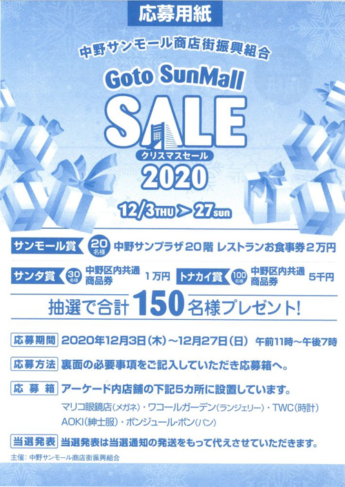 今年は【Goto SunMall SALE】と題しまして、商店街にございます店舗にて