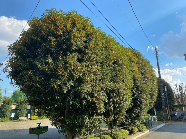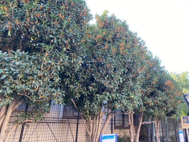 大きなキンモクセイがいくつも並んでいて、あたりに香りが漂っています。