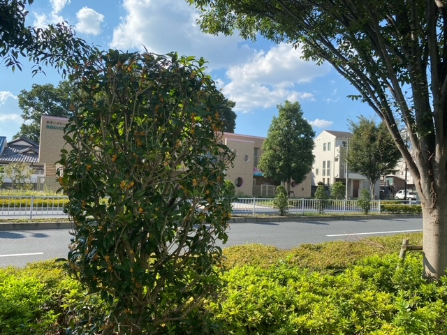 敷地内にキンモクセイの並木があり、公園中に甘い香りが漂っています。